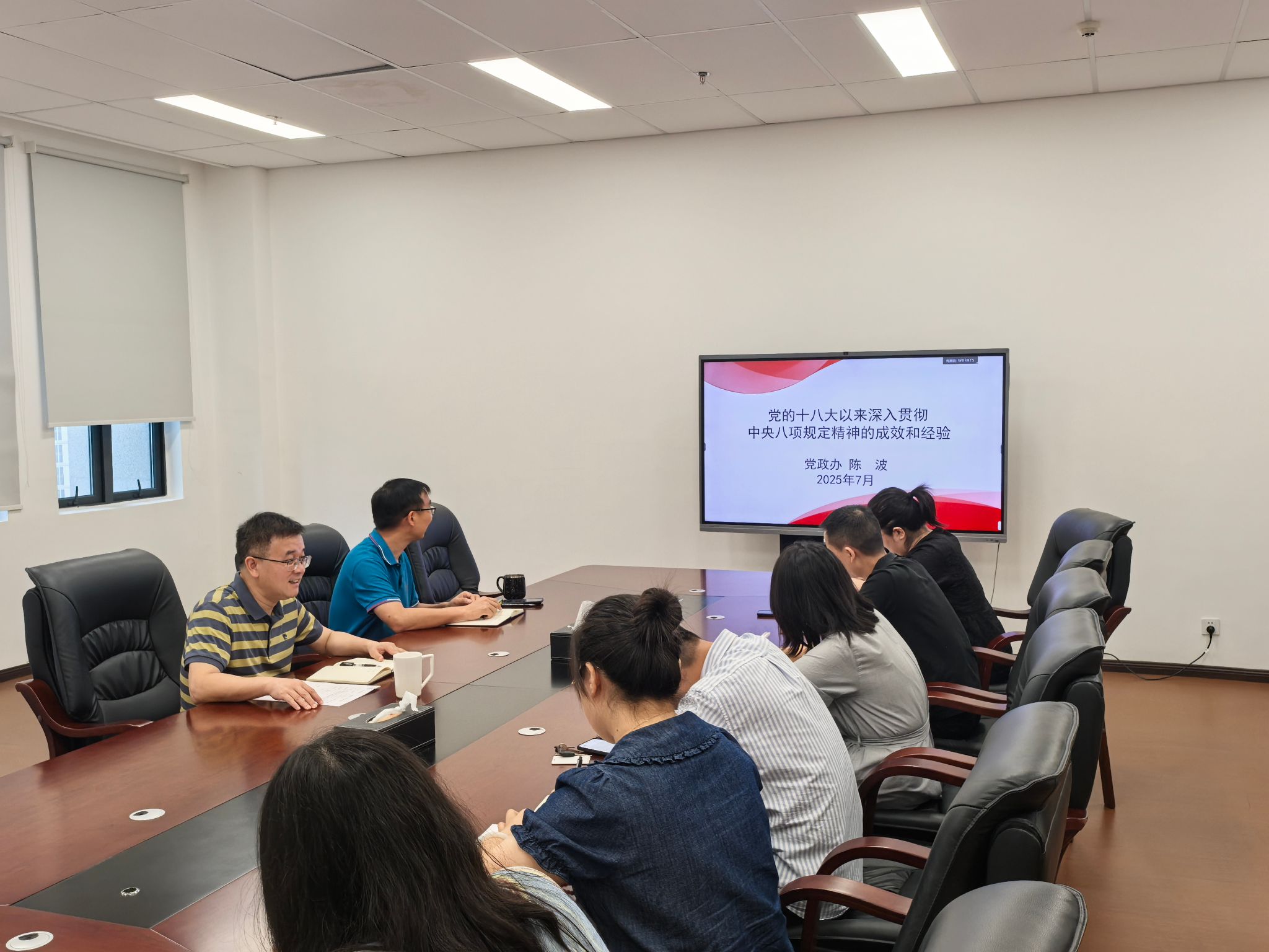 为深入贯彻中央八项规定精神,进一步强化党员干部对作风建设要求的理解与落实,7月9日,党政办主任刘明海、副主任陈波分别为全体党员上了一堂深入贯彻中央八项规定精神学习教育专题党课。