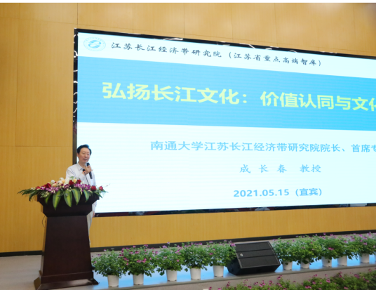 南通大学原党委书记、博士生导师、江苏长江经济带研究院院长兼首席专家成长春教授报告主题是《弘扬长江文化:价值认同与文化自信》。他从“研究长江文化内涵,夯实价值认同基础;创新长江文化产品实现机制,提升文化价值赋能;推进山水人城和谐共融,增强文化自信”三方面,提出要以“长江文化”价值认同构建长江经济带价值共同体,以社会主义核心价值观引领“长江文化”产品创新,树立“文化是魂、和谐共生是本、人民是核”的战略观念,推动长江经济带高质量发展。